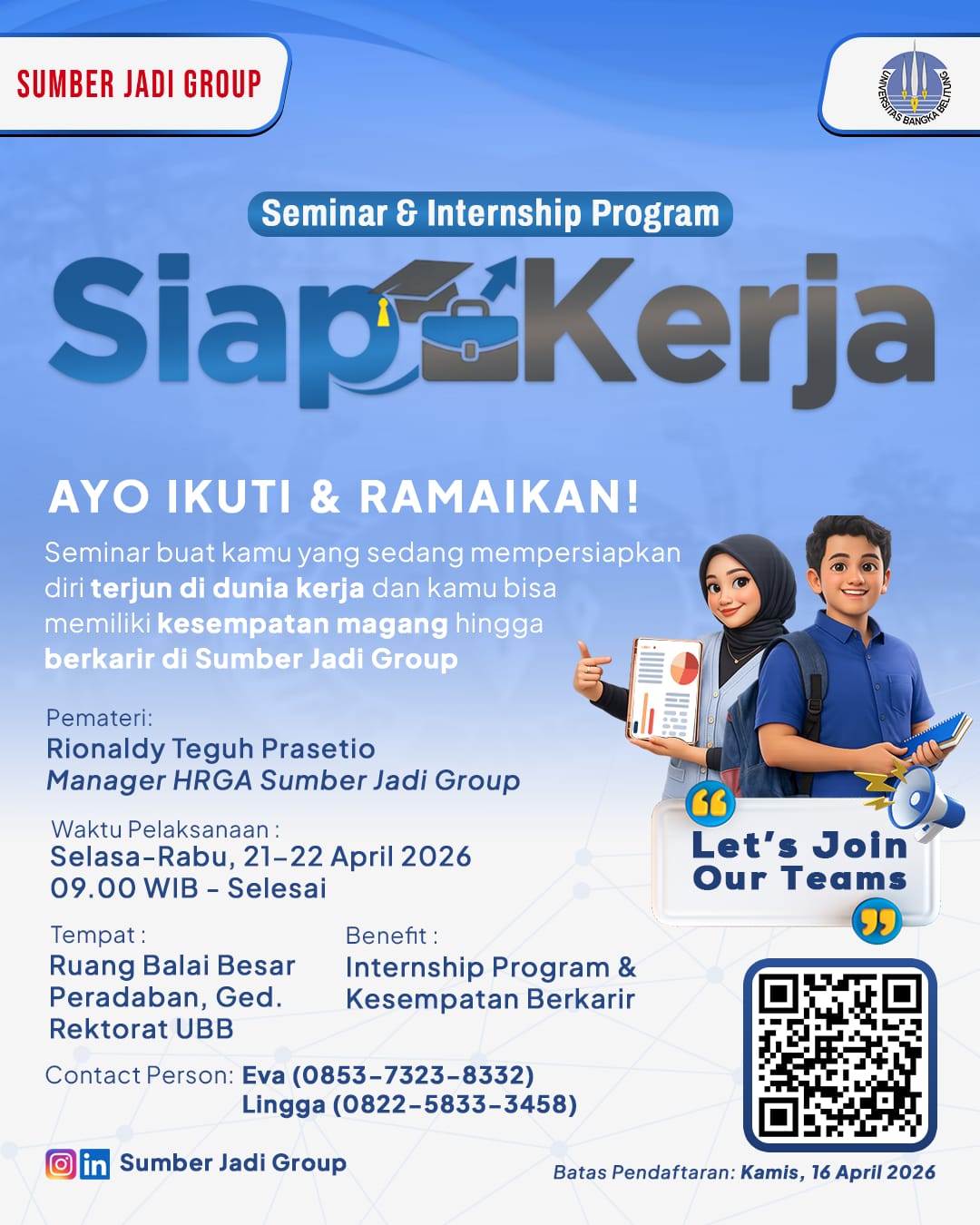 Beranda Seputar UBB Tidak ada judul Seputar UBBUniversitas Bangka BelitungRedaksi Babel0 min baca10 April 202610 April 2026205×Sebarkan artikel ini Post Views: 205 Pos TerkaitSeputar UBBUBB Bekali dan Lepas Tiga Mahasiswa FPPK untuk Magang Internasional di JepangSeputar UBBHISKI Babel dan Jurusan Bahasa & Sastra UBB Gelar Kuliah Umum: Bedah Peluang Linguistik Terapan dari Bahasa Ibu Melayu BangkaPendidikanHISKI Babel Siap Bangkit! Dosen Universitas Bangka Belitung, Diana Anggreani Dilibatkan dalam Penguatan Literasi DaerahSeputar UBBRektor Universitas Bangka Belitung Lantik Dosen dengan Tugas Tambahan, Dorong Layanan Akademik Lebih OptimalSeputar UBBDorong Peningkatan APK Perguruan Tinggi, UBB Jalin Sinergi dengan Dinas Pendidikan se-BabelSeputar UBBUBB Jadi Lokasi Sosialisasi Kompetisi PIDI–DIGDAYA X Hackathon 2026 oleh Bank Indonesia