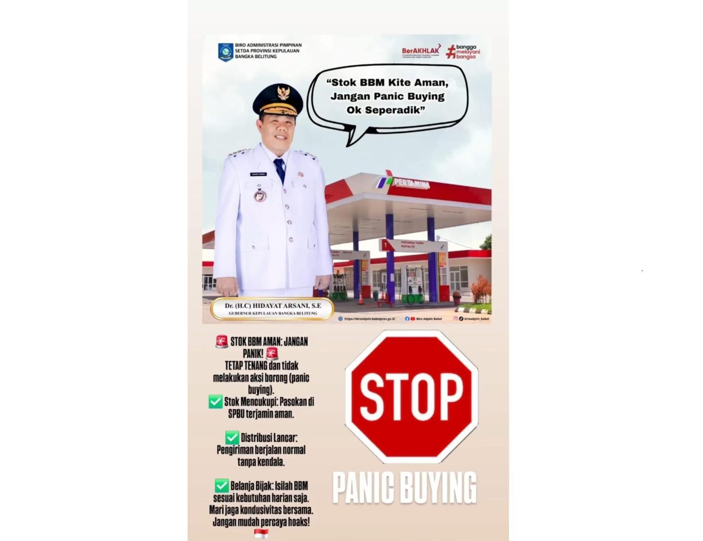 “Kami mengimbau masyarakat agar tidak panik. Persediaan BBM di Babel aman. Jadi, belilah sesuai kebutuhan,” tegasnya.