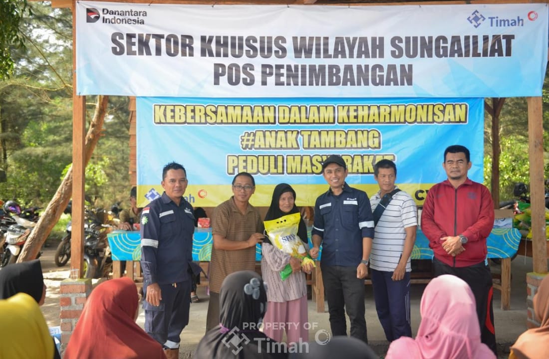 PT TIMAH Tbk bersama Mitra Tambang CV Kencana Jaya Mandiri menunjukkan kepedulian terhadap masyarakat pesisir dengan menyalurkan 200 paket beras untuk masyarakat berpenghasilan rendah di Kelurahan Sungailiat, Kabupaten Bangka, Jumat (21/11/2025).