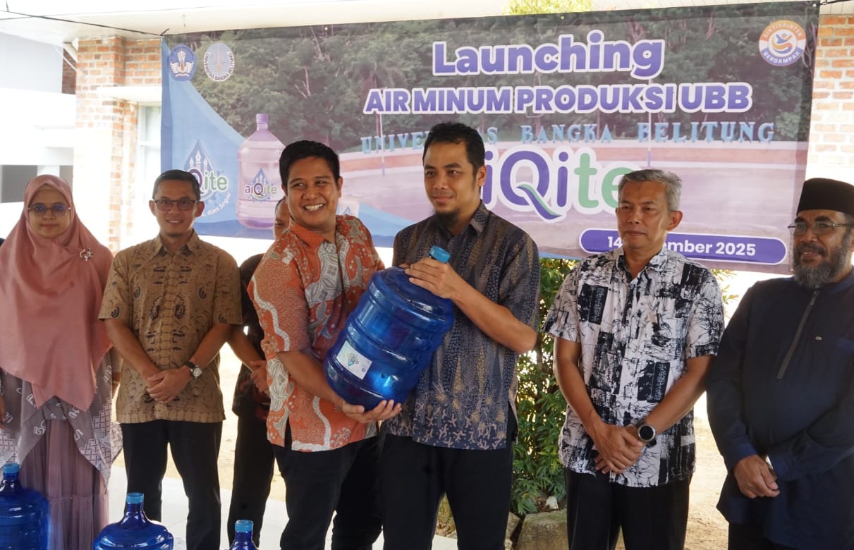 Rektor Universitas Bangka Belitung (UBB), Prof. Dr. Ibrahim, M.Si., secara resmi melaunching Air Minum Isi Ulang Aiqite yang diproduksi sendiri oleh UBB. Kegiatan berlangsung di Gazebo Fakultas Sains dan Teknik (FST) pada hari Jumat (14/11/25), dan menjadi tonggak penting bagi UBB dalam menghadirkan layanan air minum berkualitas bagi sivitas akademika dan masyarakat sekitar.