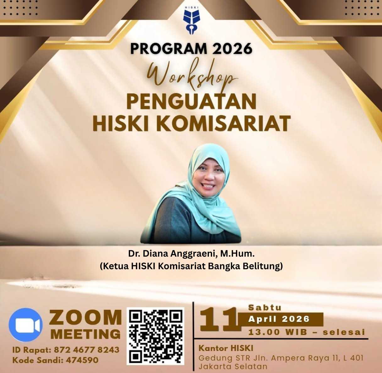 Pengurus Pusat Himpunan Sarjana Kesusastraan Indonesia (HISKI) menggelar Workshop Penguatan Komisariat secara daring, Jumat (11/4/2026), dengan melibatkan tiga wilayah: Lampung, Sumatera Selatan, dan Bangka Belitung.