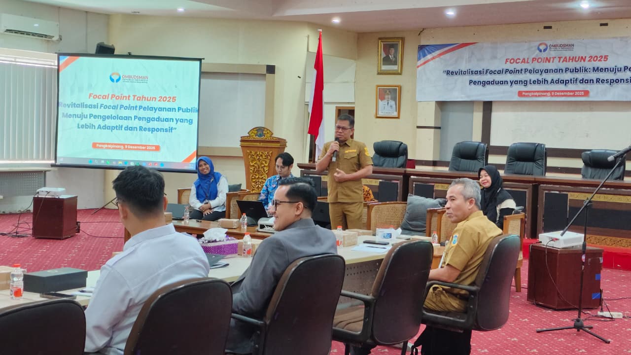 Ombudsman RI Perwakilan Provinsi Kepulauan Bangka Belitung menggelar kegiatan Revitalisasi Focal Point Pelayanan Publik menuju Pengelolaan Pengaduan yang Lebih Adaptif dan Responsif di Balai Betason Kantor Wali Kota Pangkalpinang, Selasa (9/12/2025).