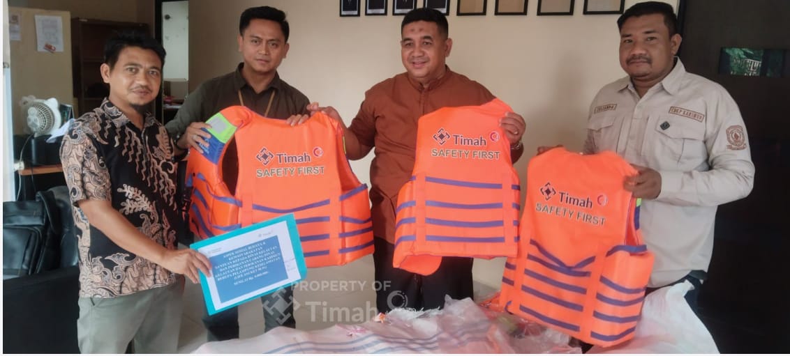 PT TIMAH Tbk kembali menunjukkan komitmennya dalam mendukung keselamatan dan kesejahteraan masyarakat pesisir khususnys nelayan. Melalui Program Tanggung Jawab Sosial dan Lingkungan (TJSL), PT TIMAH Tbk menyalurkan bantuan life jacket kepada kelompok nelayan di Kabupaten Karimun, Provinsi Kepulauan Riau.