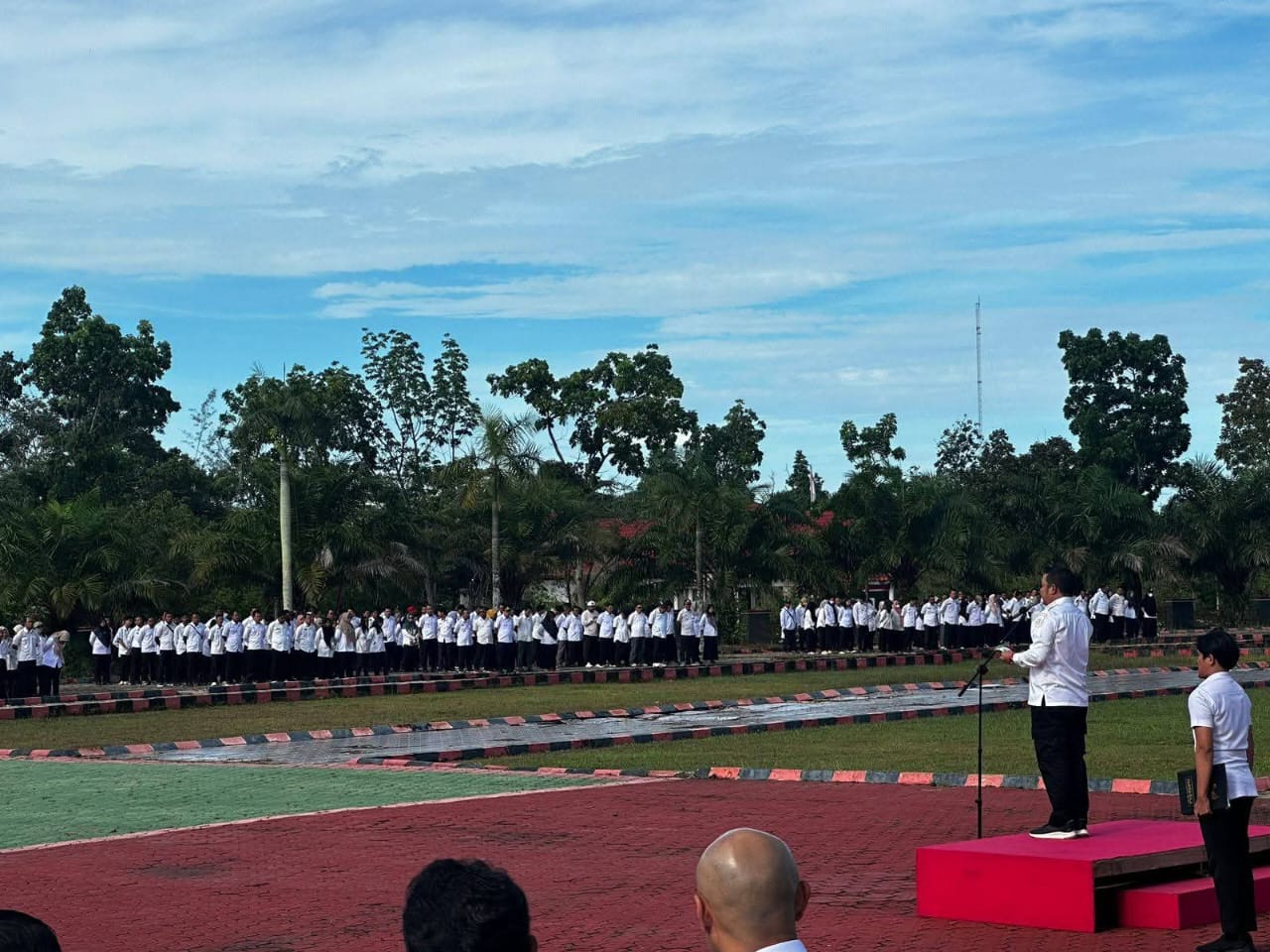 Upacara berlangsung khidmat dengan Bupati Bangka Selatan, H. Riza Herdavid, S.T., M.Tr.IP., bertindak sebagai pembina upacara sekaligus membacakan teks Pancasila.