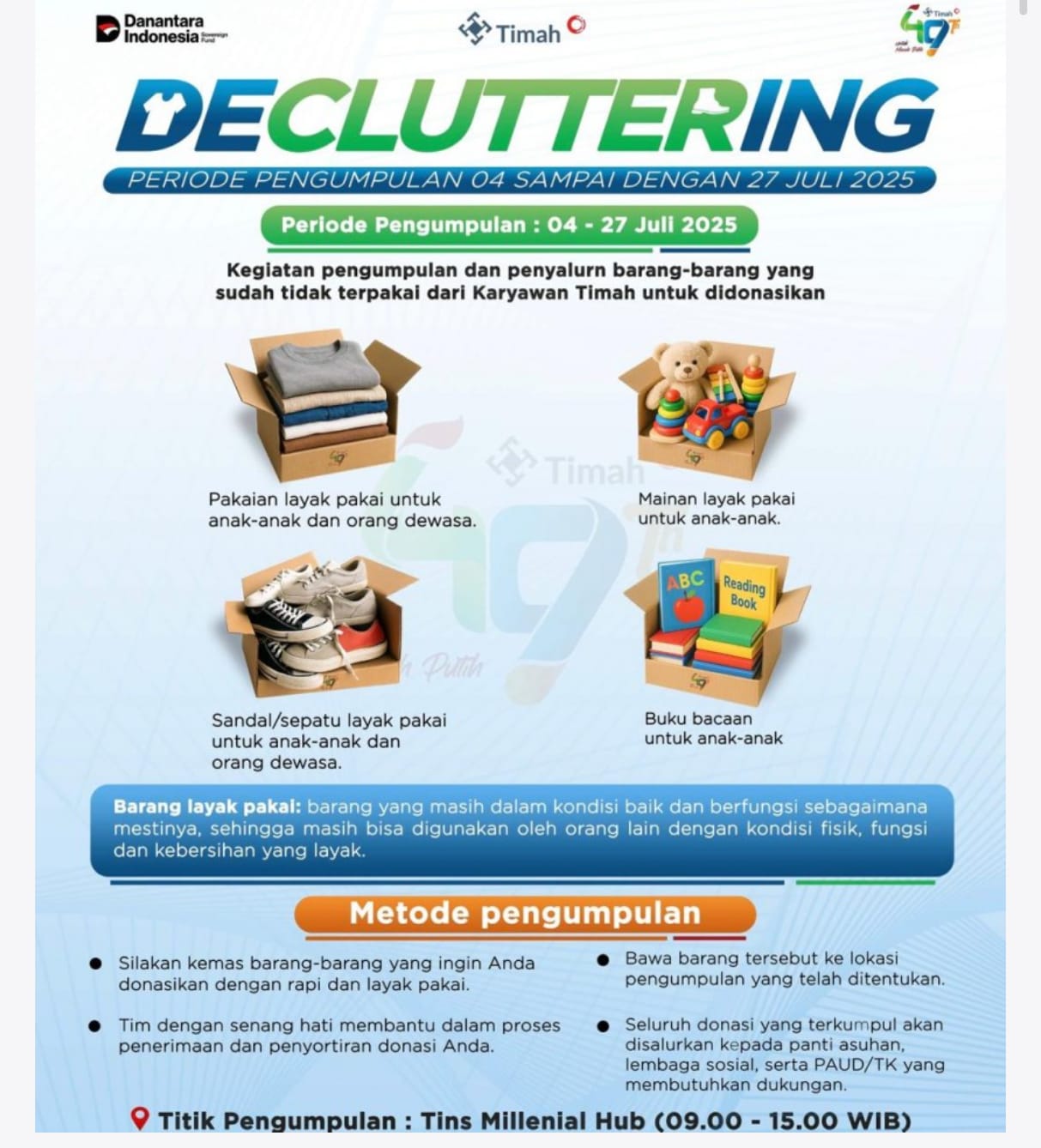 Aksi Decluttering ini akan dilaksanakan pada 4-27 Juli 2025 mendatang yang nantinya akan didistribusikan kepada masyarakat penerima.