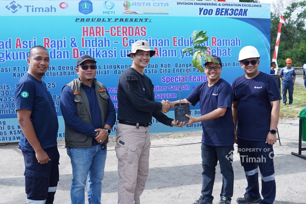 Untuk mendukung pelestarian lingkungan dan penghijauan di kawasan lingkungan Matras, Kabupaten Bangka, PT Timah melalui Divisi Engineering and Operation Excellence (EOE) menyerahkan bantuan bibit pohon kepada KSM Resam (Rumah Kreatif Matras).